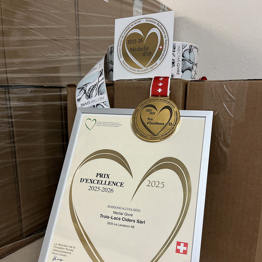 Unsere Cuvée 2024 glänzt in Gold, denn sie wurde beim Schweizer Wettbewerb für regionale Produkte 2025 in der Kategorie „alkoholische Produkte” mit der Goldmedaille und dem Prix d'Excellence ausgezeichnet. Dieser Preis wird an das beste Produkt jeder Kategorie verliehen.